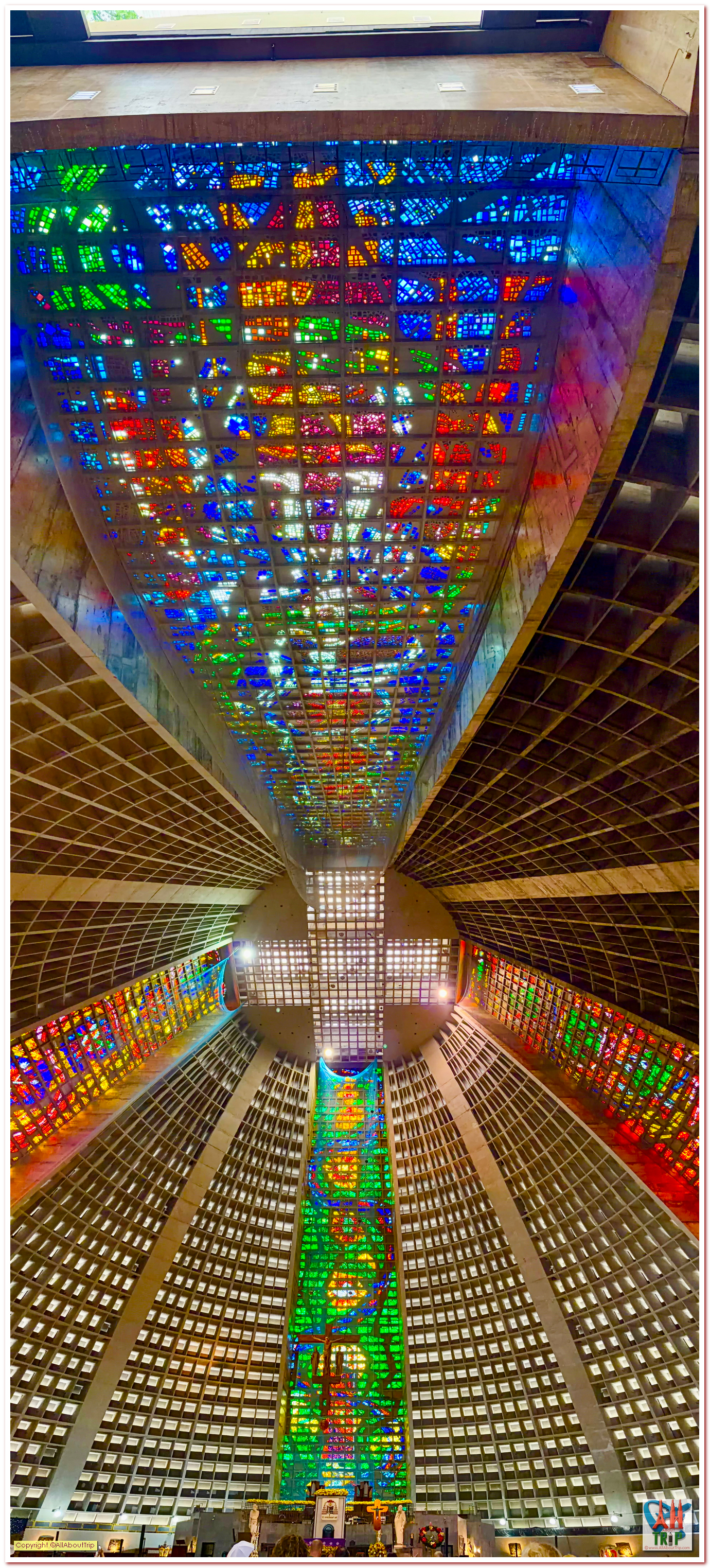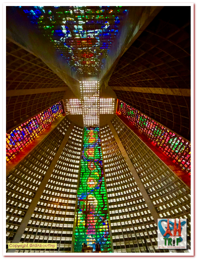 Rio’s Metropolitan Cathedral, officially the Cathedral of Saint Sebastian, looks like a spaceship decided to land in downtown Rio and call itself a church. From the outside it is a massive cone of concrete, but inside it opens into a soaring space where towering stained glass stretches upward and pours color over everything, the kind of place where even non church people pause, look up, and go quiet for a second.