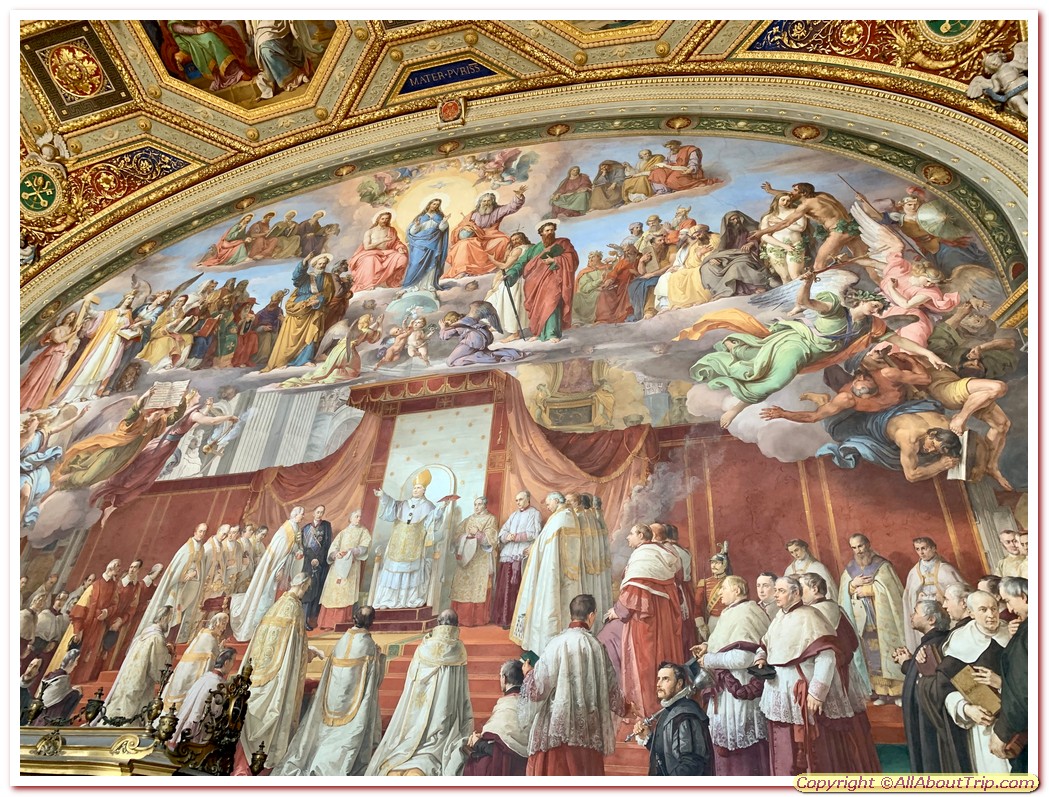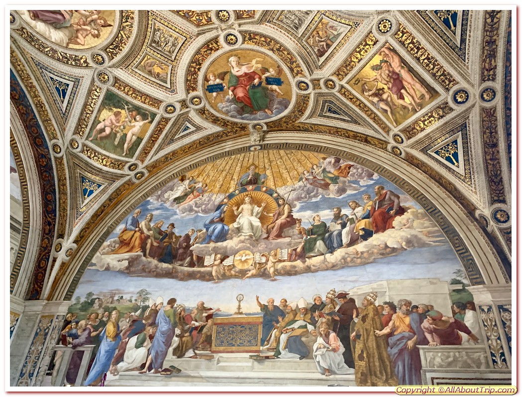 Vatican Palace - Raphael Room, Appartmento Borgia, Cappella Niccolina – The Vatican Palace’s papal apartments has a number of rooms, these are those which display beautiful Renaissance art paintings by Raphael. These rooms were assigned by Pope Julius II and Pope Leo X, both loved art. These paintings, mostly by Raphael and some by his students and other painters, were finished between 1508 and 1511.