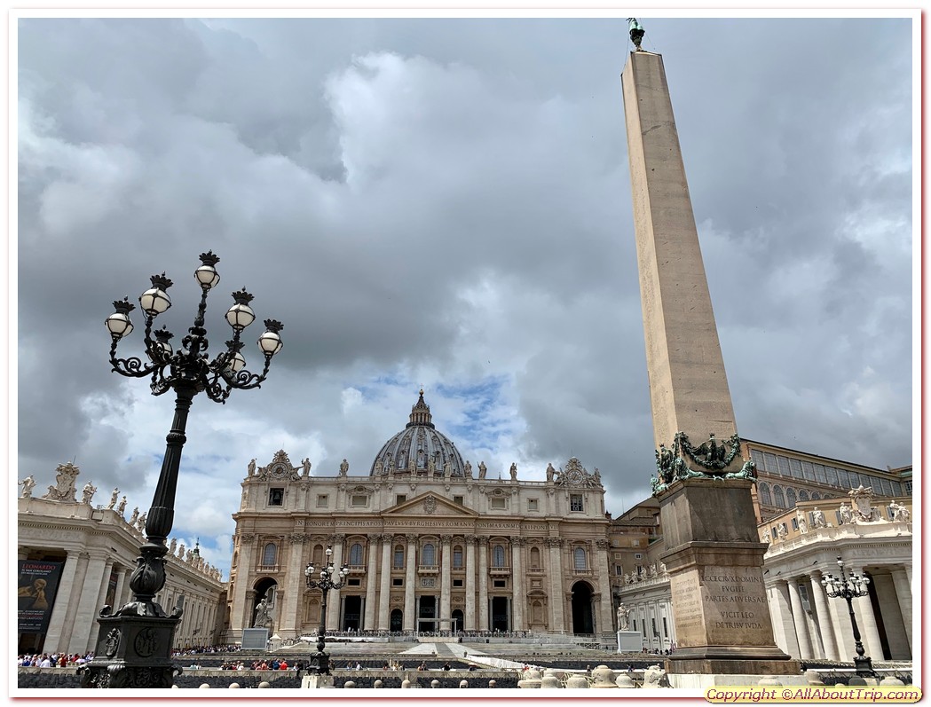 Piazza San Pietro or St. Peter's Square is a massive square or a plaza right in outside the St. Peter’s Basillica. This spectacular square, designed by Bernini, can accommodate 300,000 people. The square encompasses 248 columns and 88 pilasters with 140 statues of saints on the columns. The 25 meter high obelisk in the center, manually carried to Rome from Egypt is flanked by two fountains.